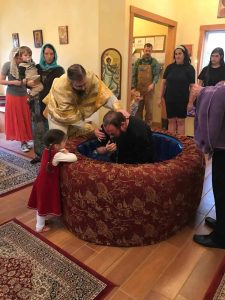 Christian Baptism is the mystery of starting anew, of dying to an old way of life and being born again into a new way of life, in Christ. In the Orthodox Church, baptism is “for the remission of sins” and for entrance into the Church; the person being baptized is cleansed of all sins and is united to Christ; through the waters of baptism he or she is mysteriously crucified and buried with Christ, and is raised with him to newness of life, having “put on” Christ (that is, having been clothed in Christ). The cleansing of sins includes the washing away of the ancestral sin.